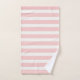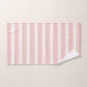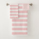 Trendy striped bath towels with pink and white stripe pattern to add a simple and modern look to your bathroom decor.