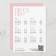 A modern pink business price list card design showcasing your business QR code, business website and social media handle as well as price lists. A minimalist personalised QR code, social media business card. A simple and professional way to allow your customers to scan, pay, view menus, price lists, make appointments etc. Customise the text and make it your own..