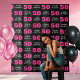 Personalised modern and bold step and repeat tapestry backdrop in pink and black for a woman's 50th birthday party. Add her name for a unique photo prop decorations.