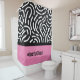 Decorate your dorm room with this fun shower curtain that features a modern pink and black abstract pattern with personalised hashtag text and a customisable colour palette. This bold design will make a fun addition to a dorm bathroom. To modify the text and colour scheme, click “Personalise,” modify the hashtag text, click “Edit Using Design Tool,” click to select the pink elements, click “Fill Colour,” select desired colour, then click “Done.” If you need help changing the colour, contact Zazzle Support at https://help.zazzle.com