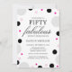 This modern and sleek invitation combines elegant script font and minimal typography to celebrate 50 and fabulous in the best way ever. A combination of grey, pink and black polka dots can be rearranged on the page to accomodate any text. Contact the designer for more design customisation options.
