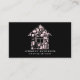 Modern trendy pink and black business card designed for a commercial or residential services for cleaning, housekeeper, maid service, or janitorial supplies. Design featuring of pink house icon and cleaning equipment icons inside it. Customise the front with two lines of custom text on a black background, and add your full contact details to the back and social media details. Trendy chic modern design.