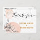 Modern Pink & Black Flower Gold Dots Wedding Invit Postcard
