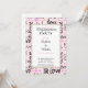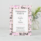 Introducing our modern engagement party invitation that is perfect for couples looking for something fun and playful! This invitation is designed to look like a picture frame, with a vibrant pink border that instantly grabs attention. The word "Love" is written in a variety of black fonts and is adorned with cute pink hearts. This playful design sets the tone for a fun and exciting engagement party!