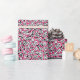 This wrapping paper features a unique and delightful design that combines the distinctive zebra stripes with the timeless appeal of black and white hearts, all framed by a delicate pink outline. The result is a striking yet charming pattern that seamlessly blends zebra patterns with heart motifs.