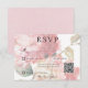 Modern Pink Blush Hydrangea Wedding QR Code RSVP Card