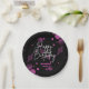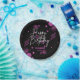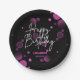 A modern, stylish and glamourous birthday paper plate. This design features a vibrant typography "Happy Birthday" with pink gradient bokeh on a black background. Personalise and add your party details. Make your milestone birthday an extraordinary event!