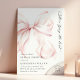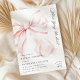 "She's tying the knot" theme bridal shower invitation with an elegant pink bow design and a modern minimal design