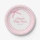 Modern Pink Bow Chequered Baby Shower Paper Plates