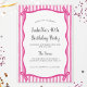 Celebrate in style with this birthday invitation, featuring a hand-drawn pink bow frame on a pink watercolour line background. Easily change the dark grey typography to suit the special celebration age!
