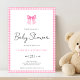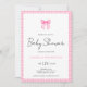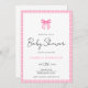 Modern Pink Bow Gingham Baby Shower Invitation