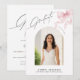 Celebrate your graduate in style with this elegant two‑sided graduation party invitation. The front features a soft pink ribbon illustration paired with graceful script lettering and a curved “Class of 2028” detail for a feminine, modern touch. Bold uppercase text highlights your graduate’s name, creating a beautiful focal point. The back of the invitation continues the clean, minimalist aesthetic with well‑organized event details, making it easy for guests to find the date, time, location, and RSVP information. A perfect blend of charm and sophistication, this design sets the tone for a memorable celebration.