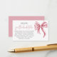 Modern Pink Bow Recipe Bridal Shower Enclosure Card
