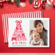 Spread the joy of the season in a fun and stylish way with our Christmas holiday card. Featuring a minimalist and trendy red and pink tree of coquette bows and a template for your photo. A candy stripes pattern in pink and red shades completes the back of the card. Ordering customised cards has never been easier - simply upload your photo, customise text, add your name, and order online! The cards are delivered straight to your doorstep, ready to be sent out to your loved ones. Choose prints or a digital Christmas card.