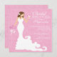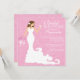 Stylish modern brunette bride wedding shower invitation features a chic modern bride toasting with a wine glass while holding a beautiful bouquet of pink wedding flowers set on a printed on paper popular pink linen background with stand out white text. Our modern bride bridal shower invitation is perfect for a popular wine bridal shower celebration. Visit our shop to view this beautiful bridal shower invitation in a large selection of floral bouquet colours and different bride variations.