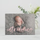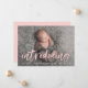 Modern Pink Brush Script Introducing Photo Birth Announcement
