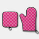 Modern pink chequerboard oven mitt & pot holder set