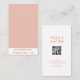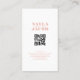 Business card design with a pink chequered pattern and a clean, minimal layout, featuring a QR code for direct access to a website or portfolio. Suitable for handmade clothing businesses, boutique brands, or creative professionals.