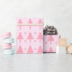 Adorning the pink canvas are stylish and chic pink Christmas trees, each one uniquely designed to add a touch of whimsy and elegance to your gifts. These trees stand tall, showcasing their vibrant pink hues and creating a striking contrast against the soft pink backdrop. Playful pink stars sprinkle across the paper, completing the enchanting design with a dash of sparkle and festivity.