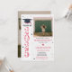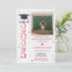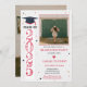 Celebrate the Class of 2025 with this elegant graduation party invitation, featuring stylish pink accents and a customisable photo placeholder to highlight your favourite graduate memory. Perfect for high school or college graduates, this design is modern and feminine, with space to add the graduate's name, event details, and personal touches. Create a beautiful and memorable keepsake for this special milestone.