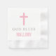 Modern Pink Cross God Bless Baby Girl Baptism Napkin