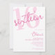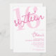 A simple modern 16th birthday invitation featuring elegant calligraphy script typography and minimalist design in pink and white colour.