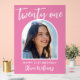 A simple modern photo 21st birthday sign featuring your personalised photo and details in an elegant minimalist design of pink and white colour.