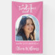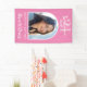 A simple modern photo 21st birthday banner sign featuring your personalised photo and details in an elegant minimalist design of pink and white colour.
