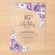 Invite your friends and loved ones with this acrylic pink floral 85th birthday party invitation. The customisable text area in this invitation template allows you to effortlessly include all the necessary details for your special birthday celebration, including the date, time, venue, and RSVP information.