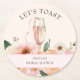 Modern Pink Floral Champagne Bridal Shower Round Paper Coaster