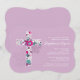 Contemporary baptism invitation featuring a purple, turquoise blue & pink floral flowers cross set on a light lavender purple background. Flip the invitation over for a matching floral background for an extra special touch. Our modern baptism invitation or christening invitation for a baby girl baptism is also available in our shop for a baby boy.