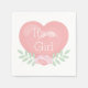 Modern Pink Floral Heart It's A Girl Baby Shower Napkin