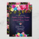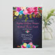 Modern Pink Floral Navy Blue Typography Wedding Invitation