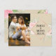 Your couple's photo is on the left front of the Save the Date postcard. Your first names, wedding date and wedding location are on the right in a pink diamond surrounded by pale pink roses. They look beautiful on a soft beige background. The back of the postcard is also beige and has a soft rose border with lots of green leaves. You can easily personalise all of the text to include your own Save the Date wedding information.