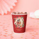 Modern pink floral wreath chinese wedding photo paper cups