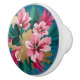 Modern Pink Flower Cluster with Gold Leaf Flourish Ceramic Knob