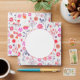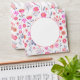 Bright garden of modern pink and orange watercolor flowers in a scattered pattern on a white background. Pretty and vibrant with a fresh Bohemian feel.