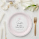 Modern Pink Gingham Swan Baby Shower Paper Plate