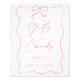 Simple and elegant girl's pink bow baby shower cards and gifts sign also featuring a pink wavy frame and light pink border.