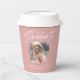 Modern minimal pink girly script photo elegant graduation announcement party decor gift. Part of a modern collection.