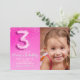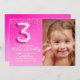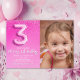 Modern Pink Glitter Balloon 3rd Birthday Photo Invitation
