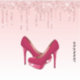 A modern, trendy design on a vinyl decal. The background has an image of sparkling pink glitter drips, along the top. The rest of the background is a delicate pastel pink colour gradient. A pair of high heel pink stilettos add a stylish fashionable vibe.