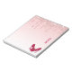 A modern, trendy design on a notepad. The background has an image of sparkling pink glitter drips, along the top. The rest of the background is a delicate pastel pink colour gradient. A pair of high heel pink stilettos add a stylish fashionable vibe.