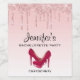 Modern trendy bachelorette party bottle labels. The background has an image of sparkling pink glitter drips, along the top. The rest of the background is a delicate pastel pink colour gradient. A pair of high heel pink stilettos add a stylish fashionable vibe.