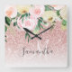 Modern Pink Glitter & Flowers Sparkle With Name Square Wall Clock