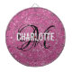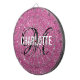 Modern pink glitter dart board with a white typography name and black monogram. Personalise with name and initial.