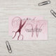 This is a modern design featuring a retro pair of scissors with a pink glow on a glitter pink background that's fades to marble. Elegant script shows of your unique monogram. Full details on the reverse of this card are easy to personalise.