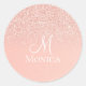 Modern Pink Glitter sparkles monogram name Classic Round Sticker