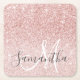Modern Pink Glitter Sparkles Personalised Name Square Paper Coaster