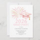 Celebrate your 2026 graduate with this pink and gold graduation party invitation featuring a blush grad cap, gold tassel and sparkling fireworks. A modern, elegant design perfect for a stylish high school or college grad celebration.